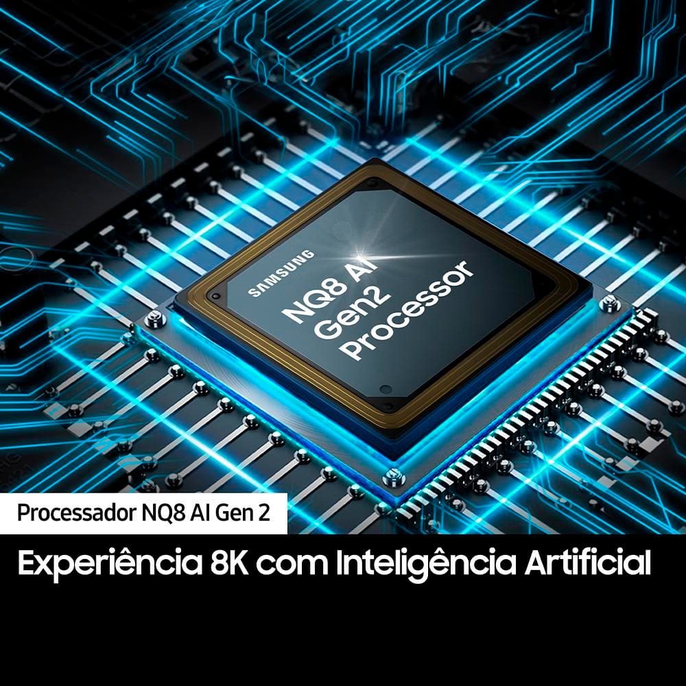 O Processador NQ8 AI Gen 2 utiliza inteligência artificial para otimizar a qualidade da imagem e o desempenho da TV, adaptando-se às suas necessidades para garantir uma experiência 8K perfeita.