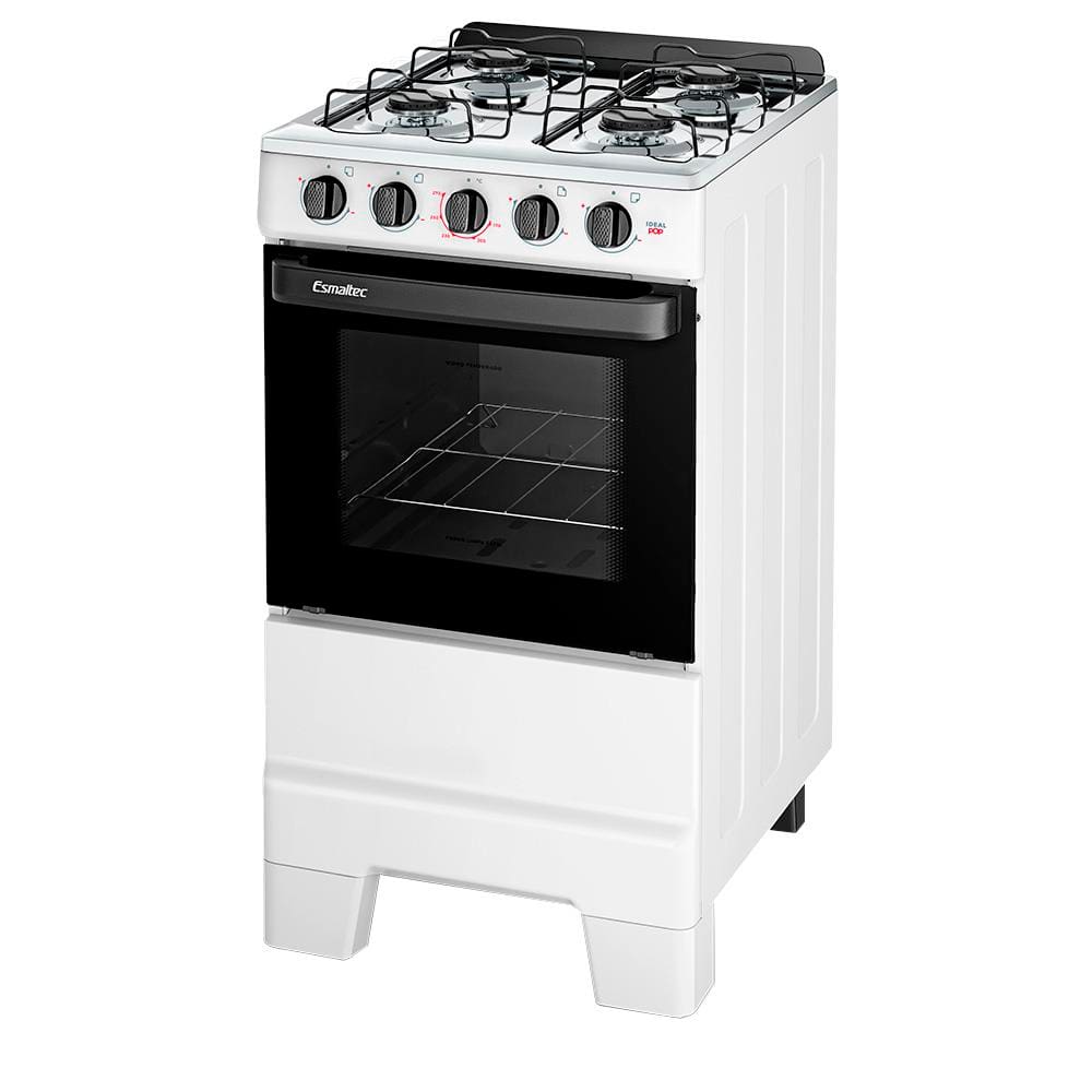 Fogão de Piso a Gás Esmaltec 4 Bocas Ideal Pop Mesa Inox e Forno Limpa Fácil 50L - Branco