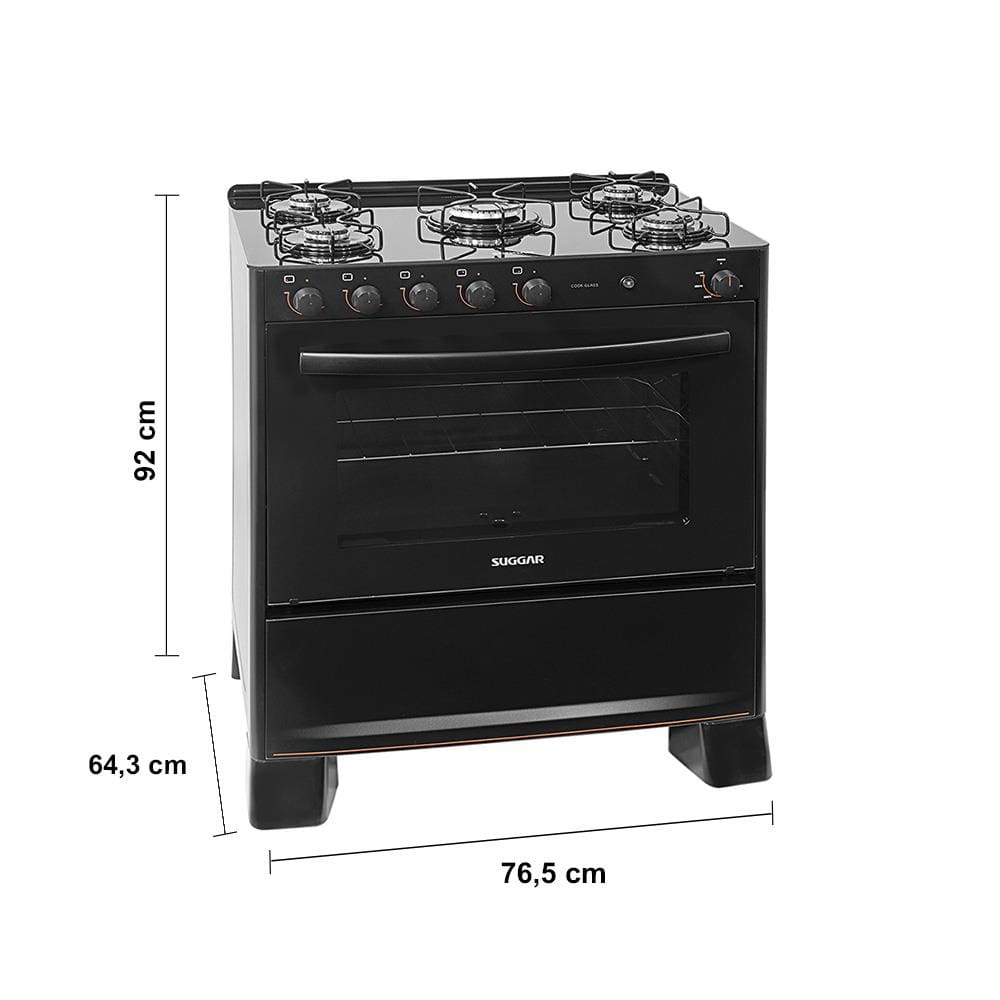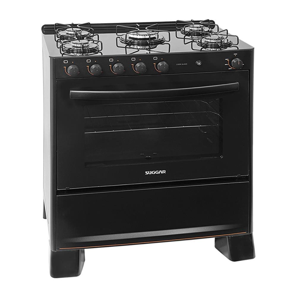Fogão de Piso Suggar 5 Bocas com Mesa de Vidro Cook Glass Preto FGVCG510PT – Bivolt