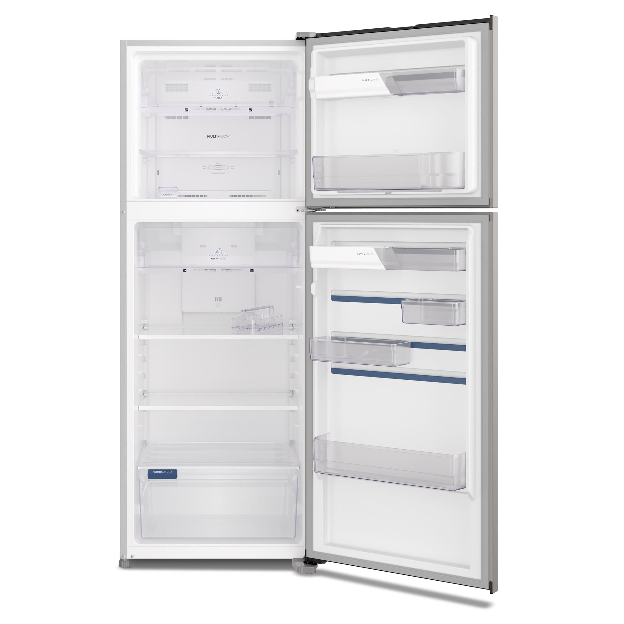 A Geladeira Electrolux com 480 litros foi projetada para oferecer a melhor conservação dos alimentos. Sua gaveta HortiNatura, especialmente desenvolvida para frutas e vegetais, mantém os alimentos frescos por até o dobro do tempo, preservando seu sabor e nutrientes. Já o freezer, com 128 litros de capacidade, é o maior do mercado, oferecendo amplo espaço para armazenar produtos congelados. Além disso, o espaço interno da geladeira é altamente adaptável, com prateleiras deslizantes e compartimentos MoveAdapt, que permitem organizar alimentos e bebidas de diferentes tamanhos e formatos, garantindo máxima praticidade e eficiência no armazenamento.