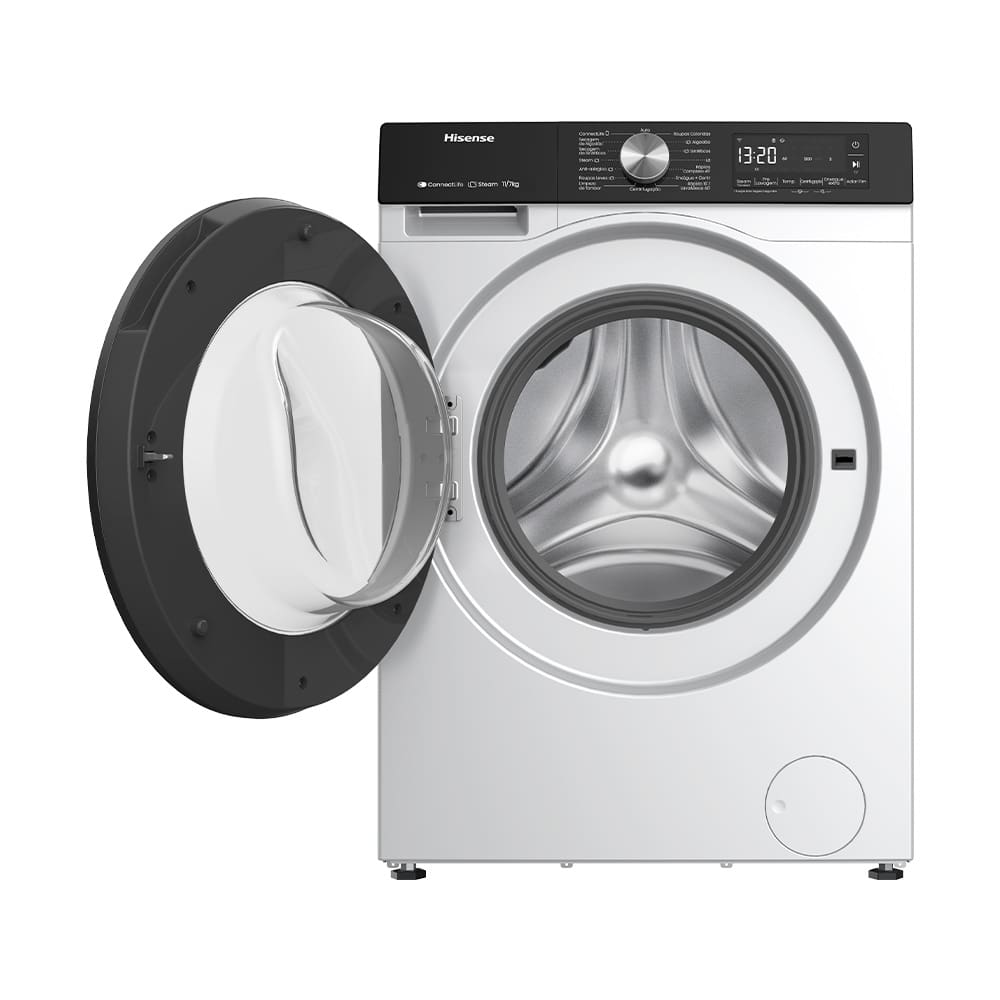 Conteúdo da embalagem: -1 Lava e Seca Hisense 11/7kg WD3S11 com Motor Inverter, Controle Wi-Fi, 13 Programas de Lavagem e 3 de Secagem, Painel Touch - Branca;