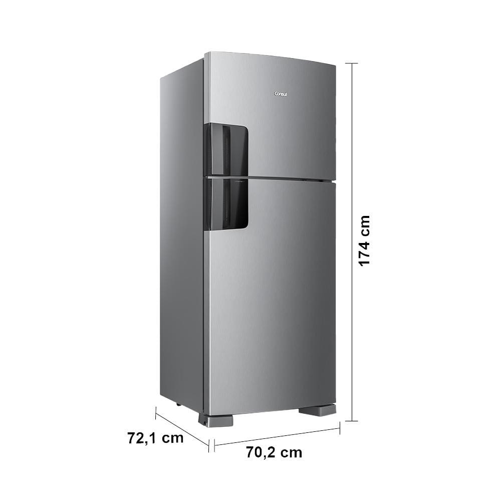 Conteúdo da embalagem: -Geladeira Consul Frost Free CRM50LK Duplex Inox com Função Turbo, Iluminação em LED e Filtro Antiodor - 410 litros;