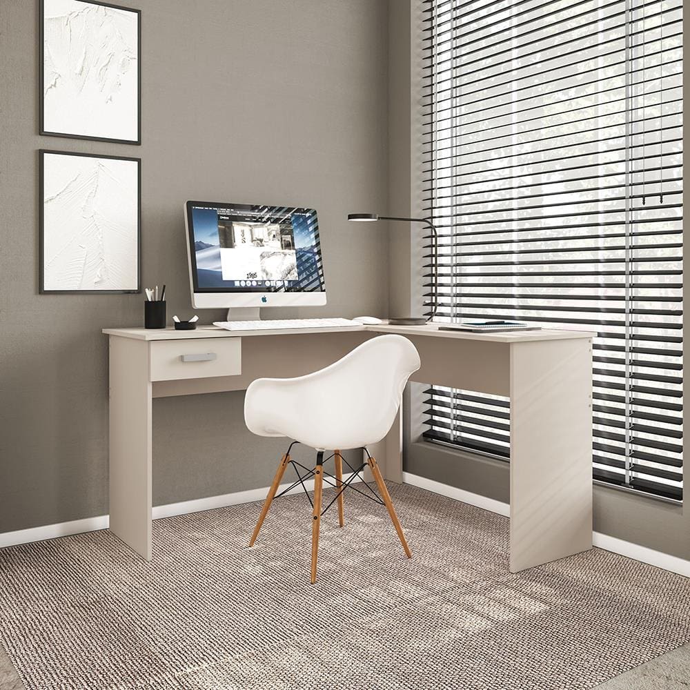 Aproveite melhor o espaço do seu ambiente com a Escrivaninha de Canto Politorno Fênix! Com design inteligente em formato “L”, ela une praticidade, conforto e estética para elevar o seu dia a dia no home office ou no escritório.
