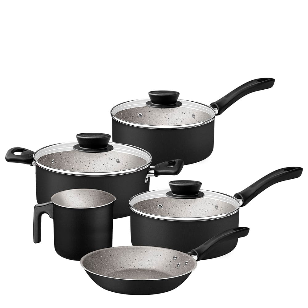 Jogo de Panelas 5 Peças Tramontina Linz em Alumínio com Revestimento Antiaderente Starflon Max – Preto