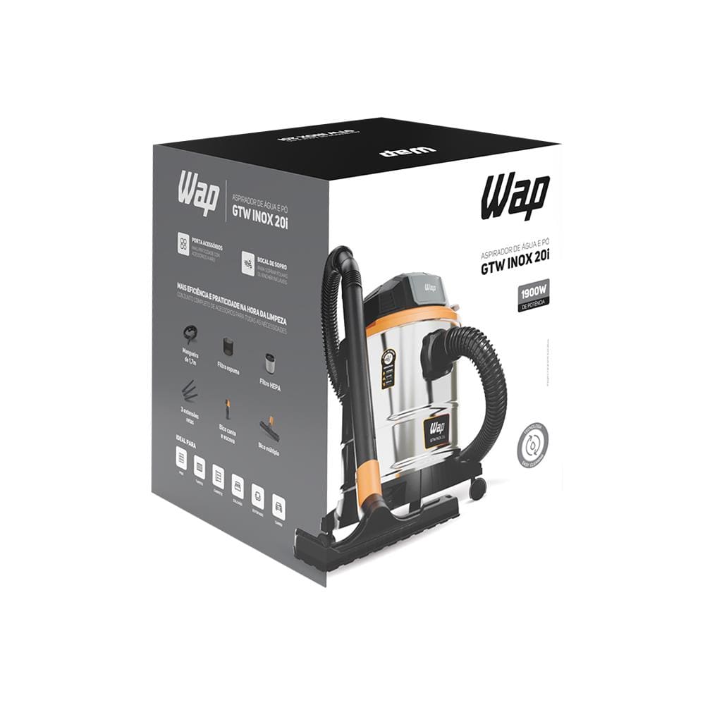 O Aspirador GTW Inox da Wap é a solução ideal para quem busca potência e versatilidade na limpeza. Com 1900W de potência e reservatório de 20 litros, ele aspira pó e líquidos com eficiência, garantindo resultados impecáveis.