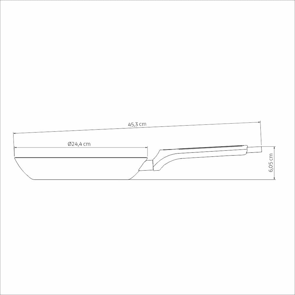 Características Gerais: Diâmetro: 24 cm Capacidade: de 1,1 a 2,0 litros Espessura: 2 mm Material: Alumínio com revestimento Starflon Max Cor: Amêndoa Cabo: Baquelite antitérmico com acabamento soft-touch Compatível com: Fogão a gás, elétrico e vitrocerâmico Peso: 450g Medidas (A x L x D): 6,1 x 24,4 x 24 cm Certificação: INMETRO 499/2021