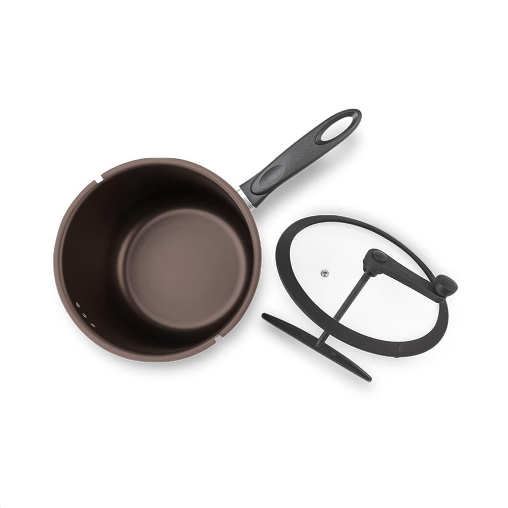 Material: Alumínio, Antiaderente, Baquelite, Silicone e Vidro
