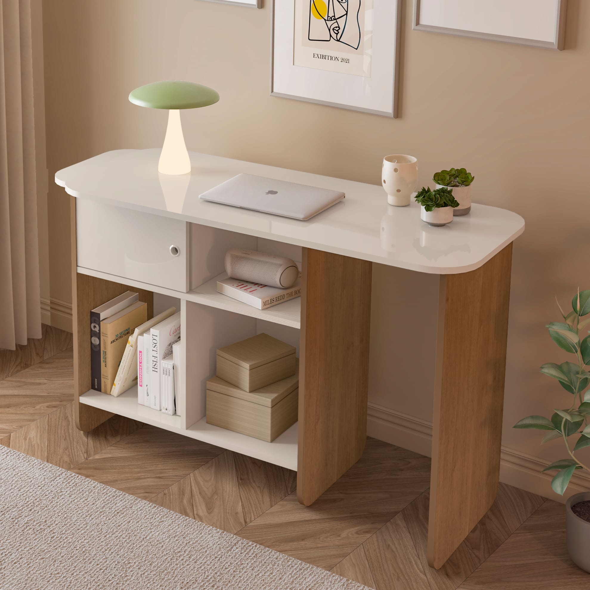 Escrivaninha Artely Nomad Tampo Rotativo Porta de Correr 4 Nichos Off White Cinamomo