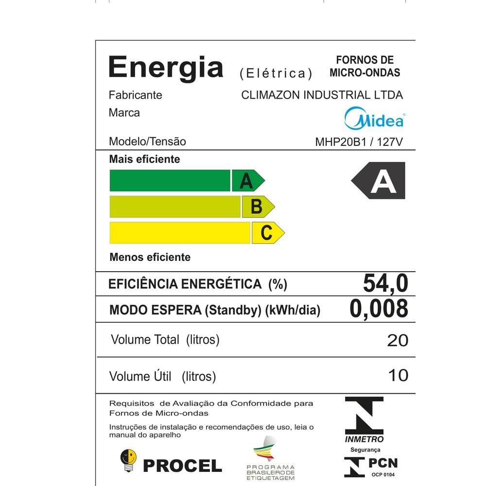 Micro-ondas Midea MHP20B MasterCook 20L 1050W Painel Touch Branco