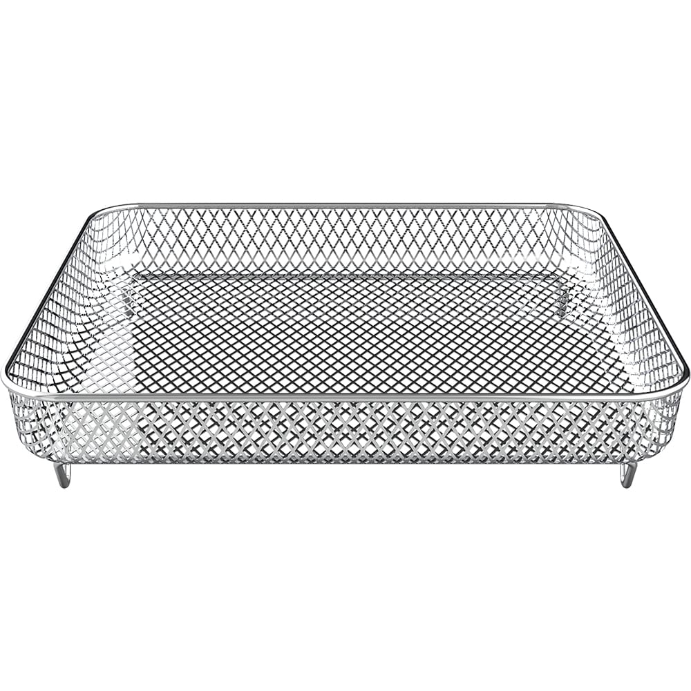 Acessórios inclusos: bandeja coletora de migalhas removível, assadeira coletora de gordura, prateleira em aço inox, cesto de fritura em aço inox e gancho para remoção segura do cesto.