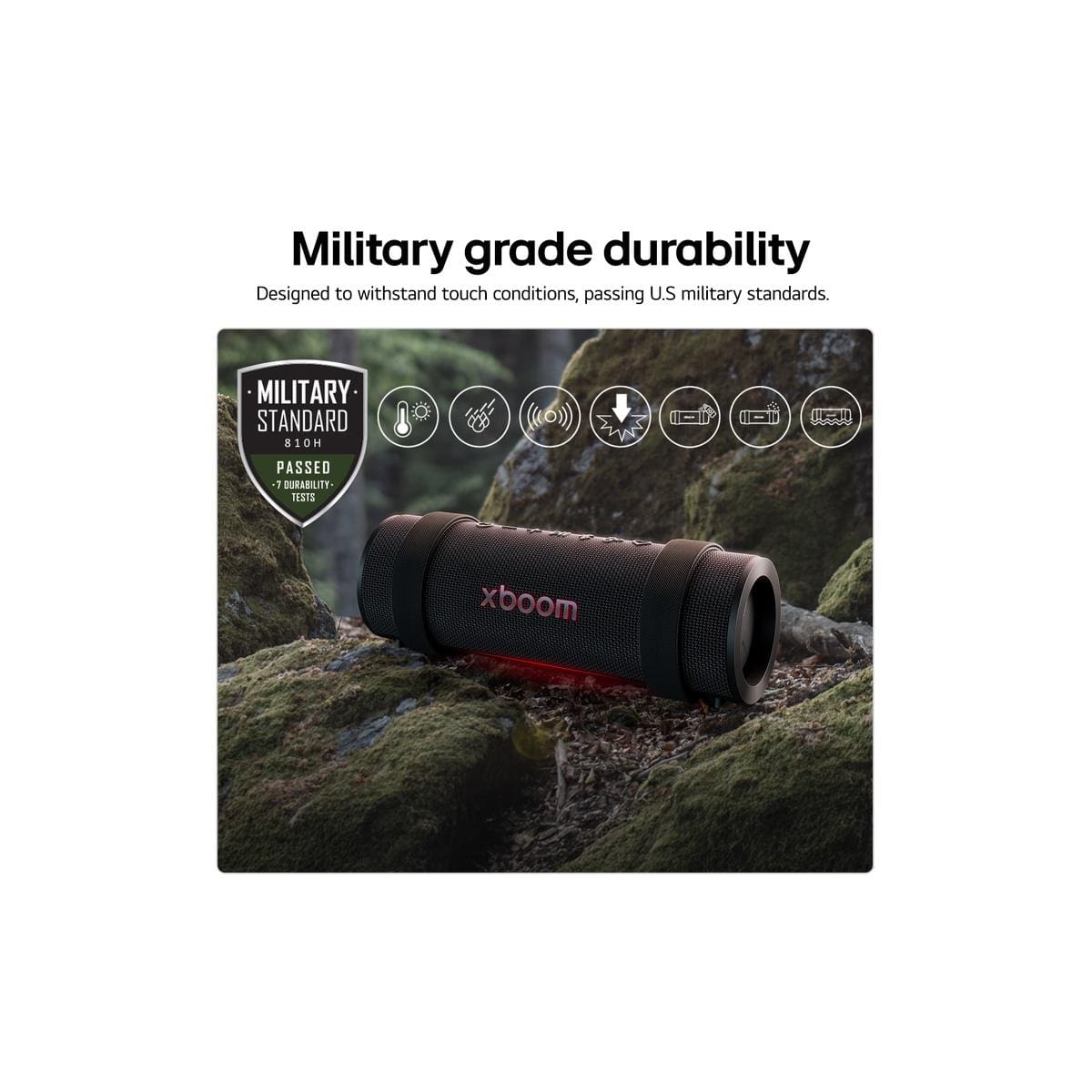 Resistência Militar Testada em 7 condições extremas – incluindo alta temperatura, vibração, impacto, chuva, maresia e poeira – esta caixa de som atende ao padrão MIL-STD dos EUA. Além disso, possui proteção IP67, resistente à poeira e submersão em até 1 metro de água doce por 30 minutos.Eu quero
