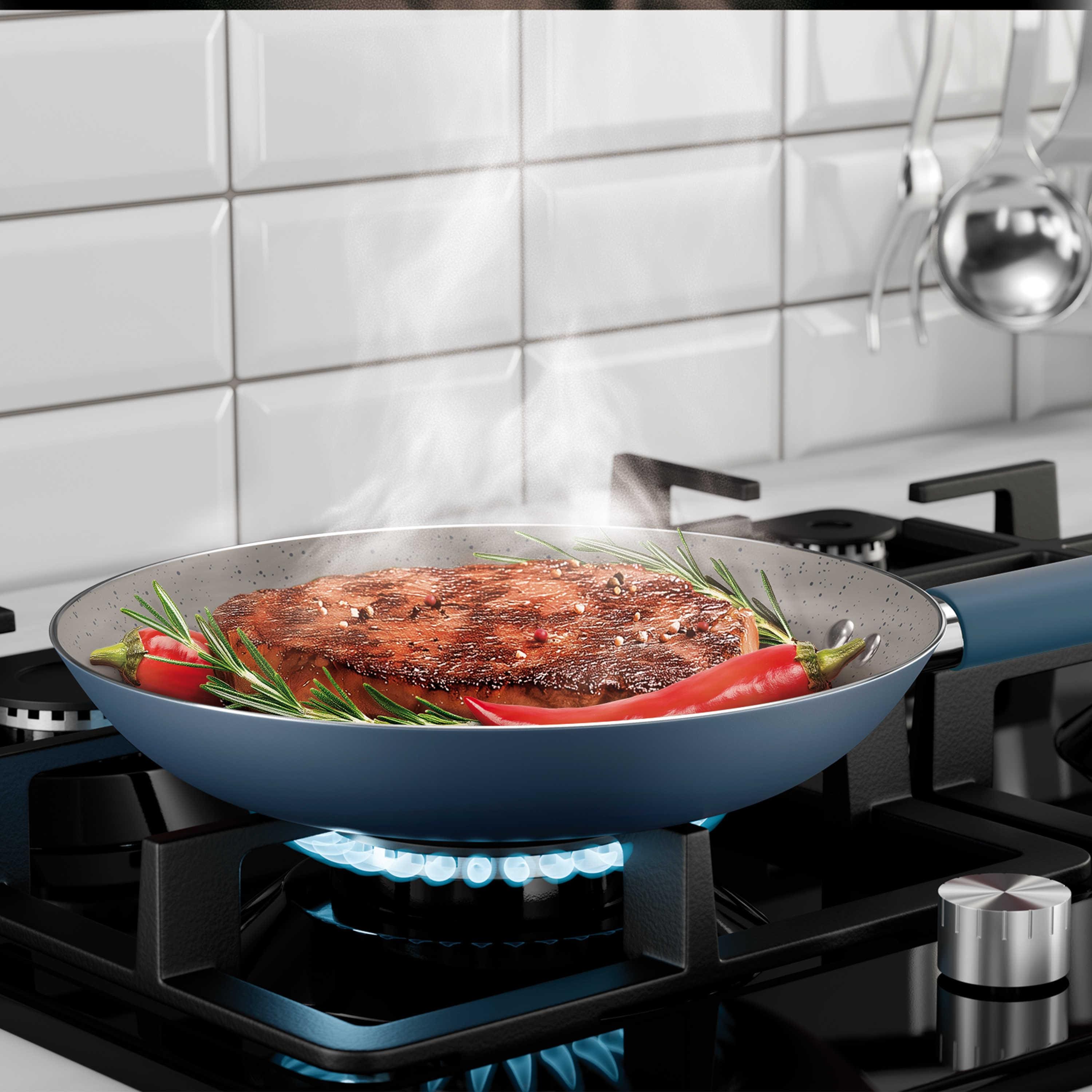 A Frigideira Intense 22 cm da Euro Home é a escolha perfeita para quem busca praticidade e elegância na cozinha. Produzida em alumínio de alta qualidade com revestimento antiaderente premium, ela garante preparo saudável, utilizando menos óleo e evitando que os alimentos grudem.