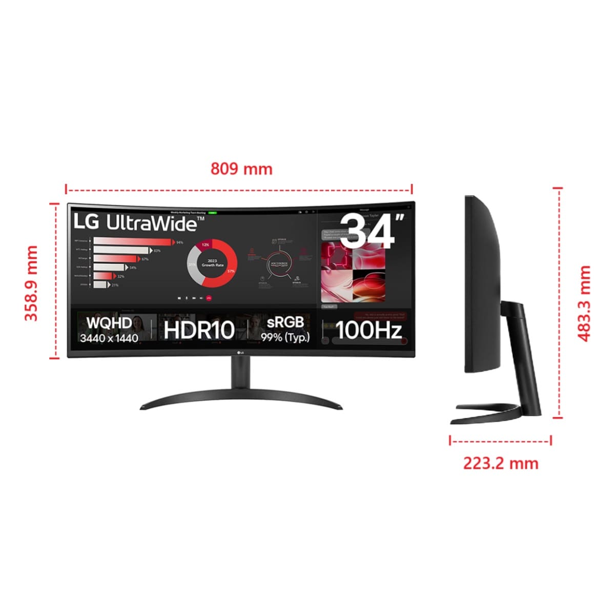 Monitor Curvo 34” LG UltraWide WQHD 34WR50QK-B 100Hz HDR10 Preto
