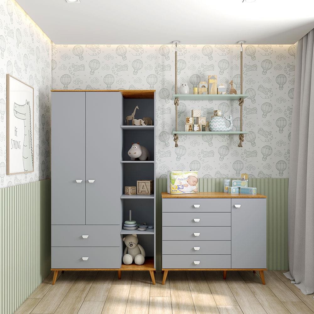 Conteúdo da Embalagem: - 1 Guarda-Roupa Infantil Bartira Ternura com 5 Nichos, 2 Portas, 2 Gavetas e 106,8 cm de Largura