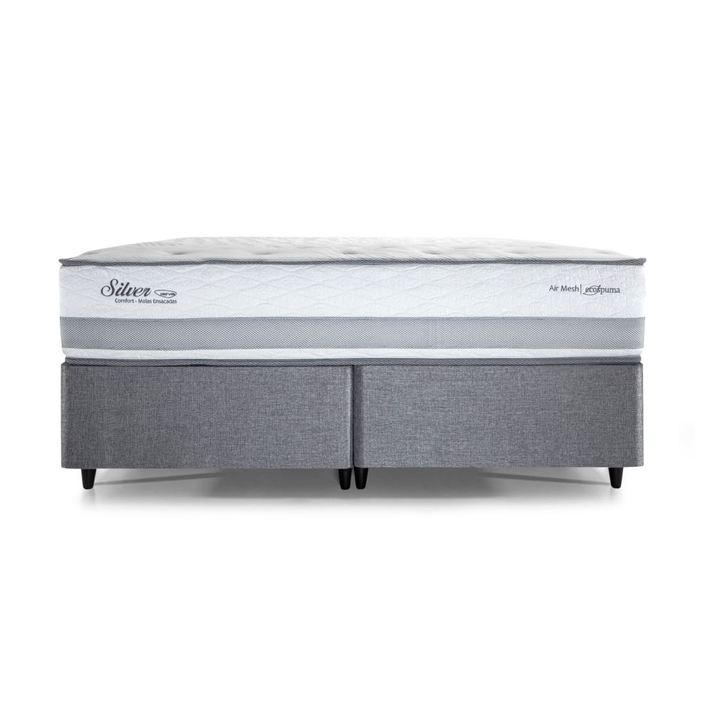 Conteúdo da Embalagem: -Cama Queen Size Herval Silver com Pillow Top e Molas Ensacadas 69x158x198cm - Cinza;