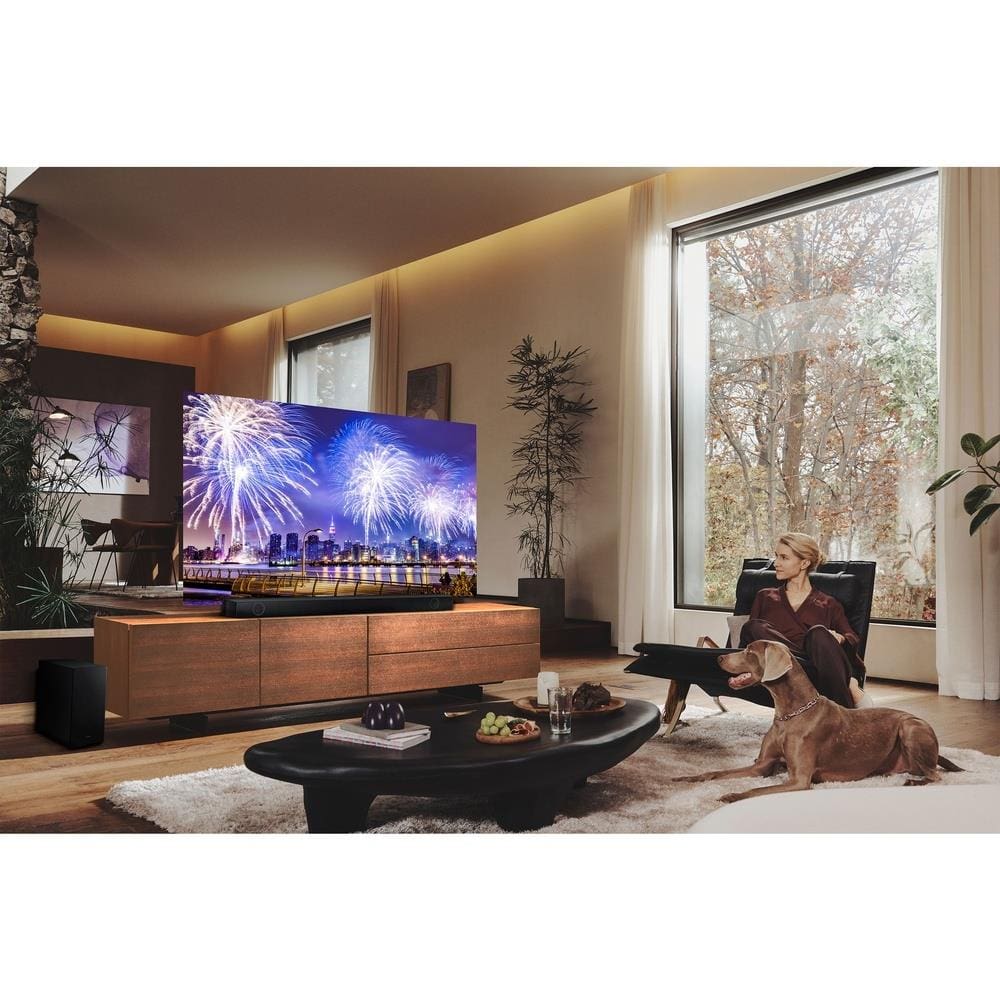 - Som imersivo com Soundbar 410W, Dolby Audio e Subwoofer sem fio
