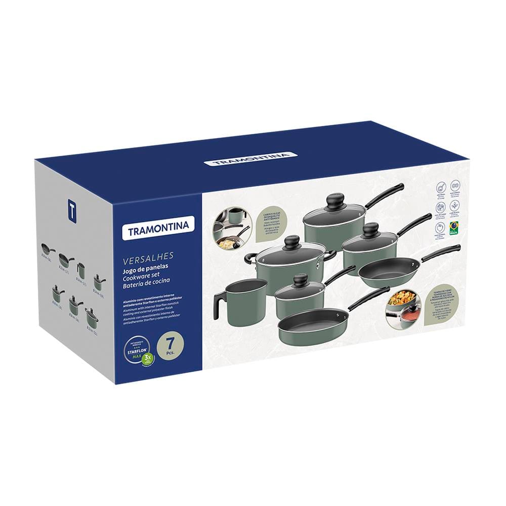 Conjunto de Panelas 7 Peças Tramontina Versalhes Starflon Max Verde + Faqueiro 12 Peças Tramontina Leme Cinza