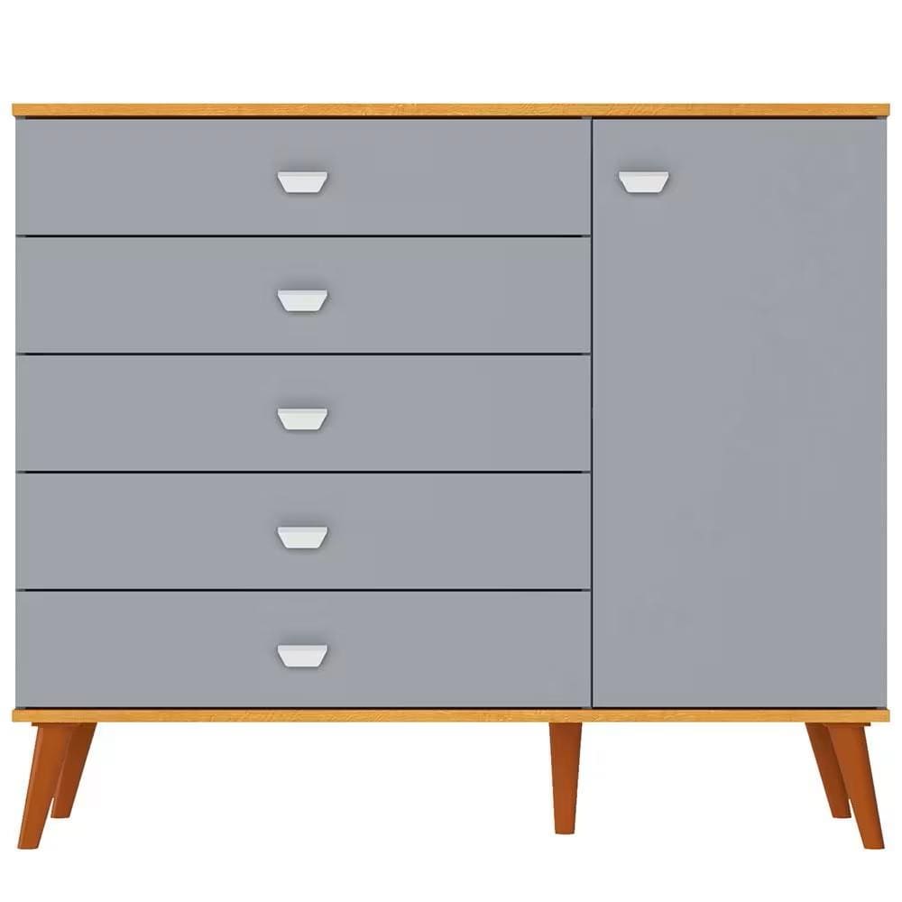 A cômoda Ternura é perfeita para manter tudo ao alcance das mãos. Com 5 gavetas espaçosas e uma porta com prateleira interna, ela oferece espaço para roupas, acessórios e objetos pessoais. Seu design funcional e pés plásticos garantem estabilidade e facilitam a limpeza do ambiente.