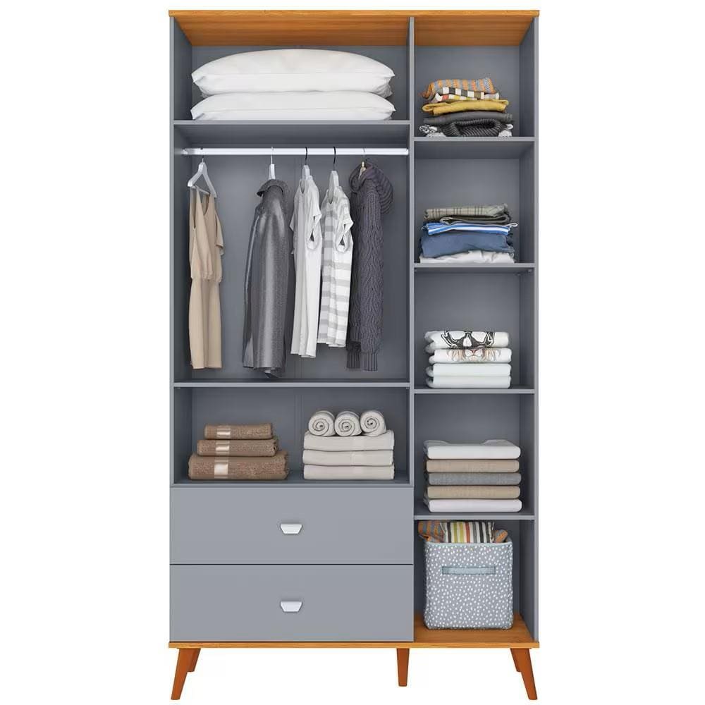 Produzidos em MDP de alta qualidade com acabamento Finish Foil, os móveis oferecem resistência, durabilidade e um visual sofisticado. O guarda-roupa conta com maleiro, 4 prateleiras internas, suporte para cabides em alumínio e portas com puxadores plásticos, garantindo organização para roupas dobradas e penduradas. As gavetas possuem corrediças telescópicas, que proporcionam deslizamento suave e silencioso.