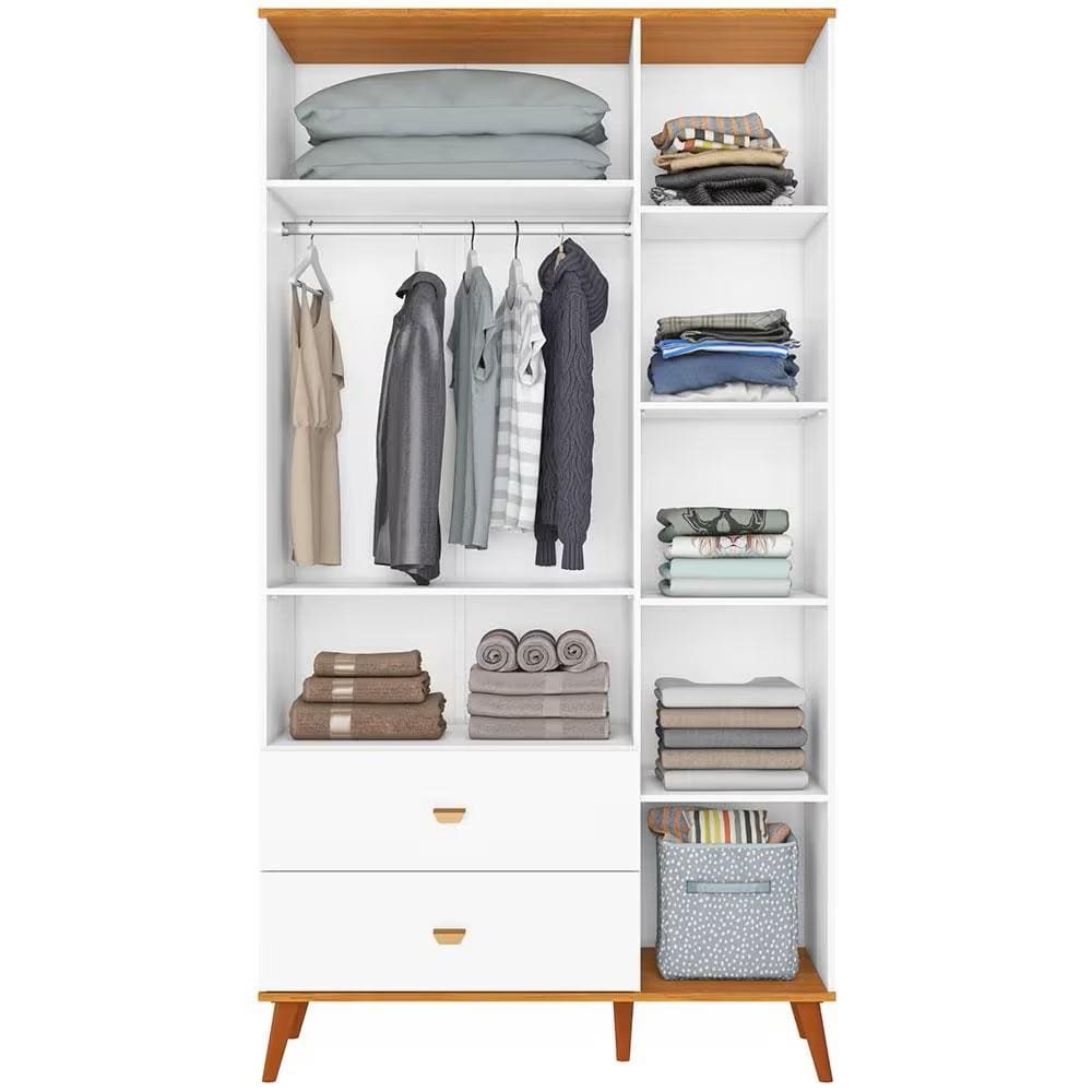 Além disso, o armário Ternura possui 1 maleiro, 1 compartimento interno para roupas dobradas e 4 prateleiras internas, além de suporte de cabides em alumínio. Essa combinação permite uma organização eficiente de roupas dobradas e penduradas, maximizando o espaço interno do armário, que conta com 3 portas de bater que oferecem uma melhor proteção para as roupas.