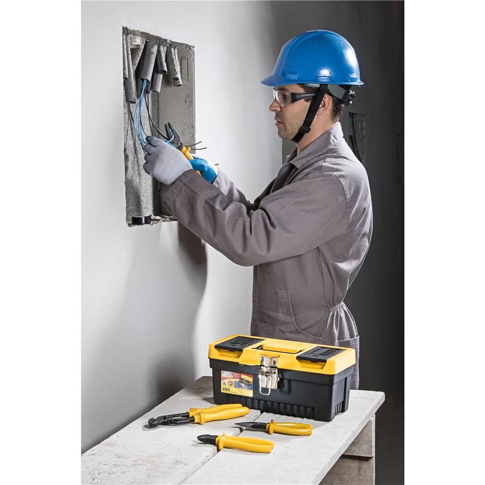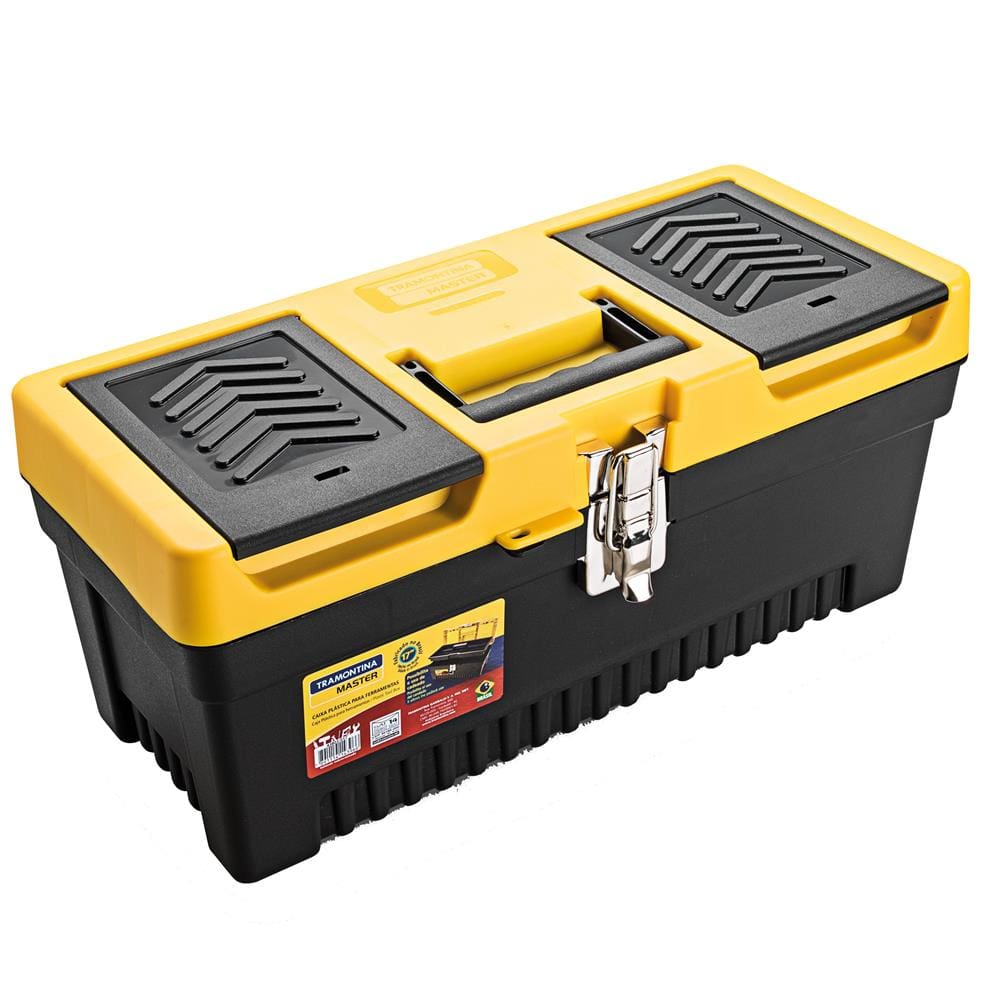 Características Gerais: - Corpo injetado em plástico de alta resistência. - Trava metálica niquelada. - Utilizada para o armazenamento e transporte de ferramentas manuais, peças e acessórios. - Possibilita o uso de cadeado. - Bandeja plástica interna removível. - Dois compartimentos na tampa para armazenamento de peças pequenas.