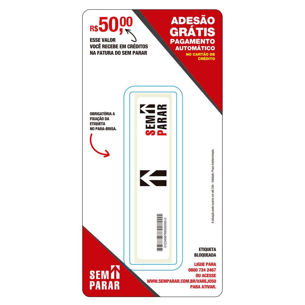 - O valor pago é revertido em créditos de R$ 50,00 em mensalidades descontados na fatura do SEM PARAR. Para ativação do serviço e desbloqueio você deve seguir as instruções da embalagem.