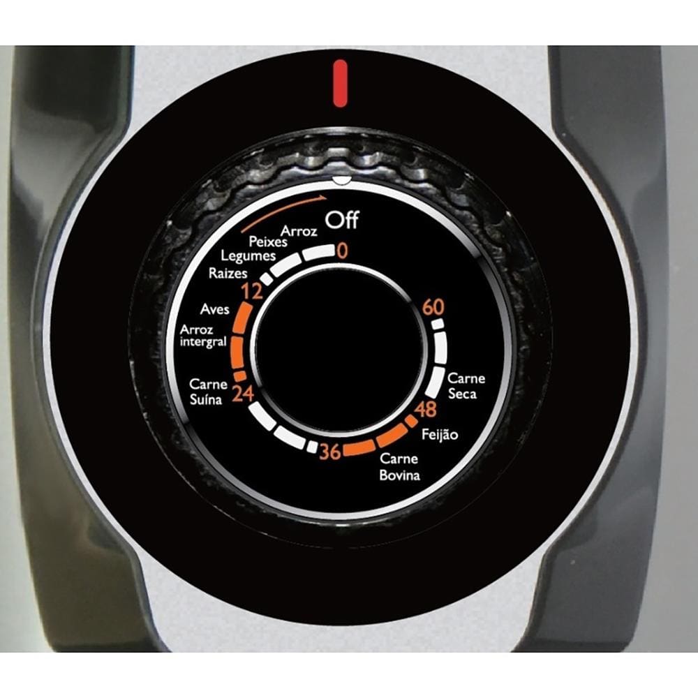 Com o timer fácil de programar a panela começa a manter a pressão, o timer começa a contagem regressiva. Quando o tempo do timer é atingido, a panela ativa o modo de aquecimento automaticamente.