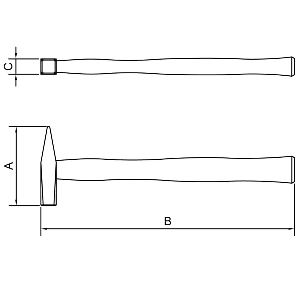 Características Gerais: • Cabeça forjada e temperada em aço especial • Perfeito balanceamento entre cabeça e cabo • Acabamento polido e envernizado • Cabo em madeira envernizada • Sistema de fixação da cabeça ao cabo por resina epóxi • Cabeça modelo protegida contra oxidação com verniz • Martelo submetido a um processo localizado de têmpera para se obter uma dureza adequada na base de impacto e unha/pena que suporte o uso contínuo por longo períodos Medidas (Croqui) • Dimensão Extra A: 105,0 mm • Dimensão Extra B: 300,0 mm • Dimensão Extra C: 23 mm • Peso: 300g