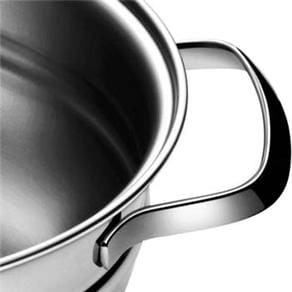 Esse conjunto de panelas possui fundo triplo (aço inox+alumínio+aço inox), resultando em um cozimento uniforme e rápido. Além de saída discreta de vapor e pegadores que harmonizam com as alças da panela.