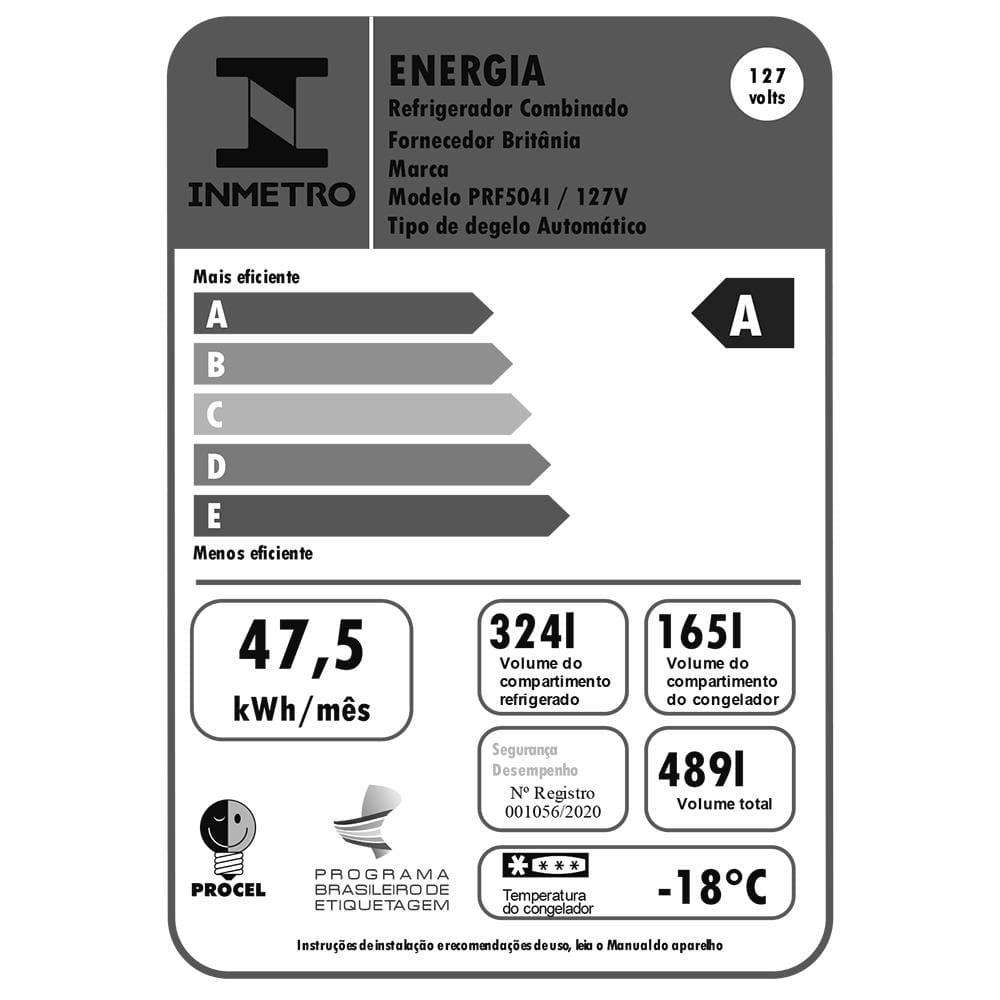 Características Gerais: Capacidade de 489L (324L no refrigerador e 165L no freezer)