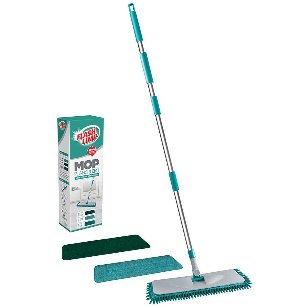 O Mop Plano da FlashLimp é prático e eficiente. Com ele você pode escolher entre 3 tipos de limpeza: pesada, úmida ou seca. Sua base flexível permite alcançar áreas de difícil acesso e o cabo conta com apoio emborrachado, muito mais confortável e seguro.