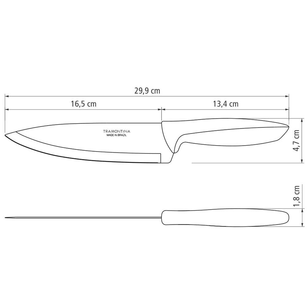 Conteúdo da Embalagem: - 1Faca 7" Chef Tramontina Plenus em Aço Inox - Off-White
