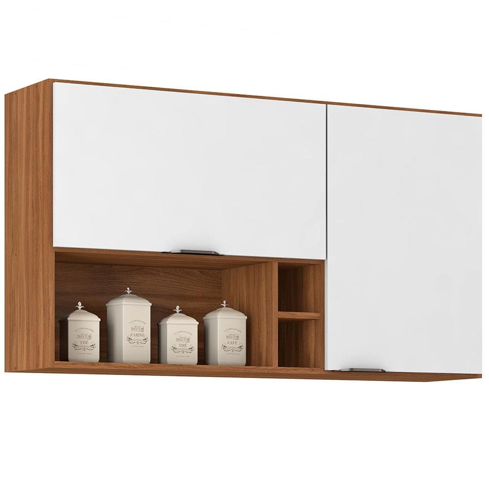Conteúdo da Embalagem: - 1 Armário Aéreo Demóbile Firenze com 2 Portas, 2 Prateleiras e 2 Nichos - Amêndola/Branco