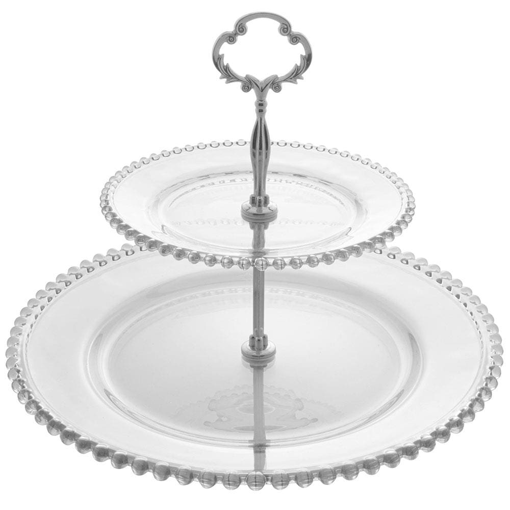 Suporte Duplo para Doces Wolff Pearl em Cristal - 25 x 32 cm