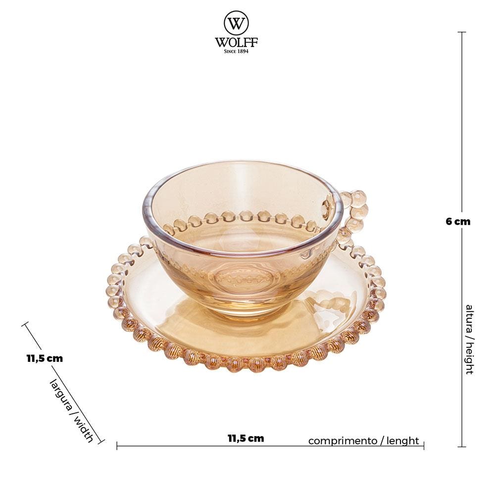 Conjunto com 4 Xícaras e Pires para Chá Wolff Pearl em Cristal Âmbar - 180 ml
