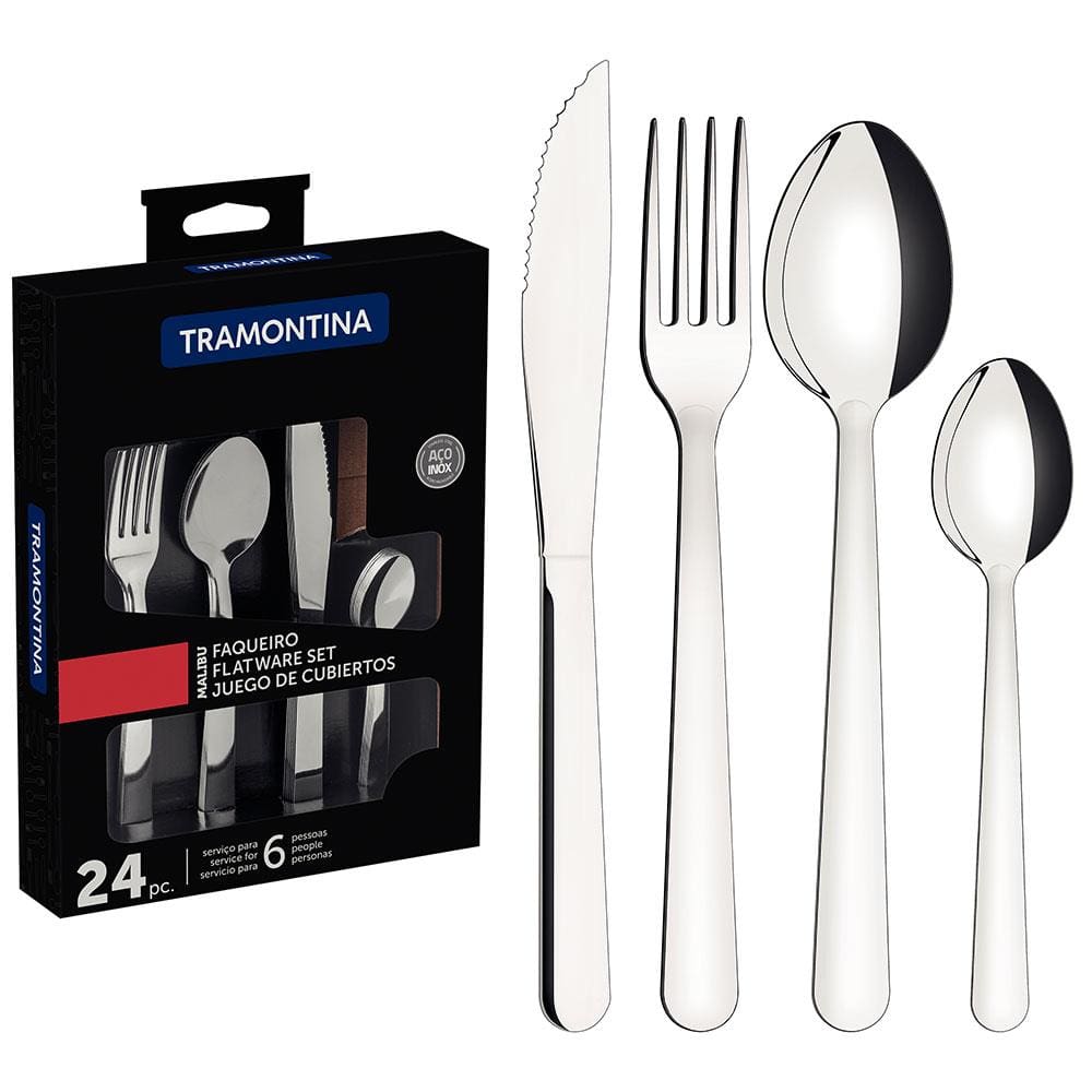 Faqueiro 24 Peças Tramontina Malibu em Aço Inox com Alto Brilho