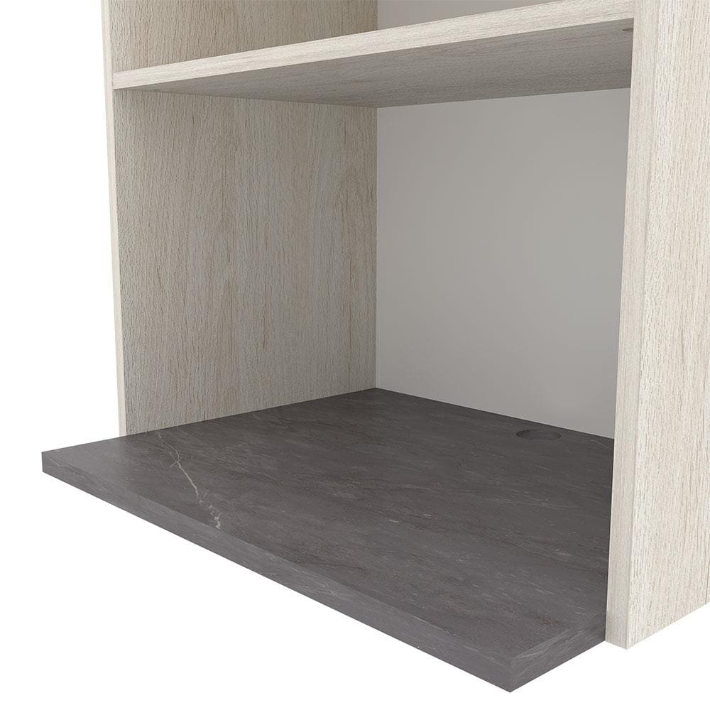 Equipado com porta basculante, esse móvel ainda conta em sua estrutura com nicho para micro-ondas, puxador em alumínio, sistema de dobradiças com amortecedor e pistão a gás que permite abrir e fechar a porta sem impacto, acabamento em finish foil que possibilita maior vida útil ao produto e capacidade para suportar até 36kg bem distribuídos.