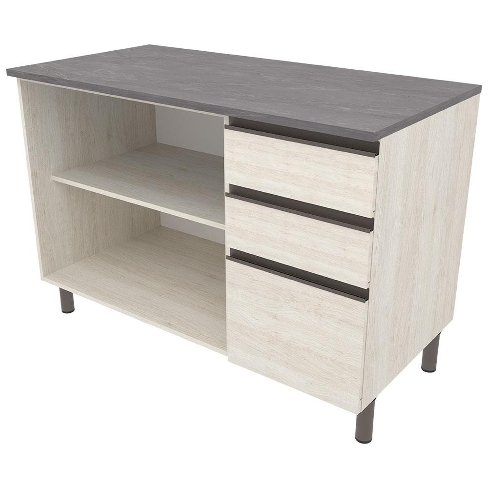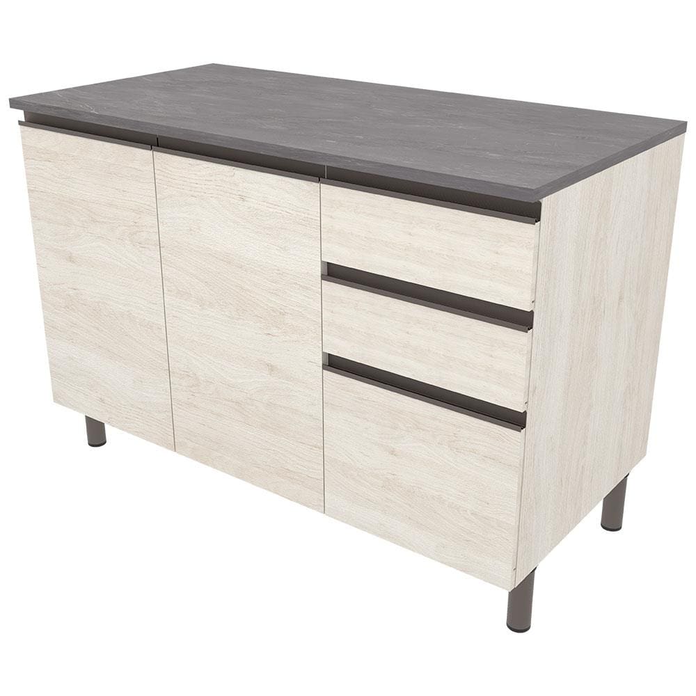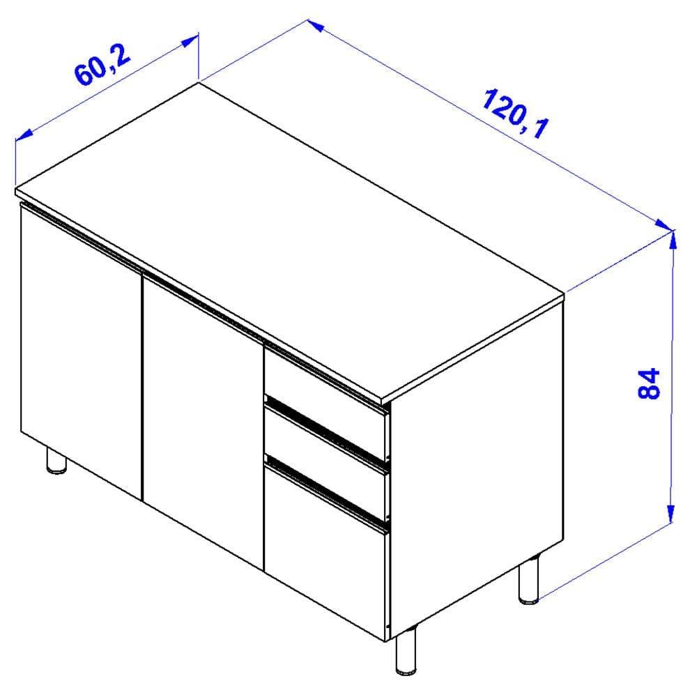 Balcão Bartira Cristal MDP 15mm com 2 Portas, 3 Gavetas e 1 Prateleira - 120,1cm de largura