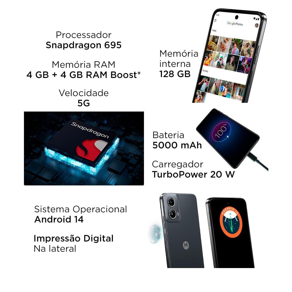 Smartphone Motorola Moto g34 5G Preto 128GB, 4GB RAM + 4GB Ram Boost, AI Câmera 16MP Sensor FPS Lateral