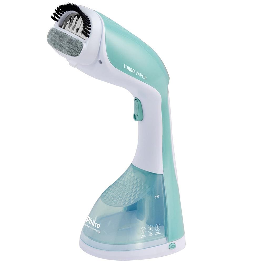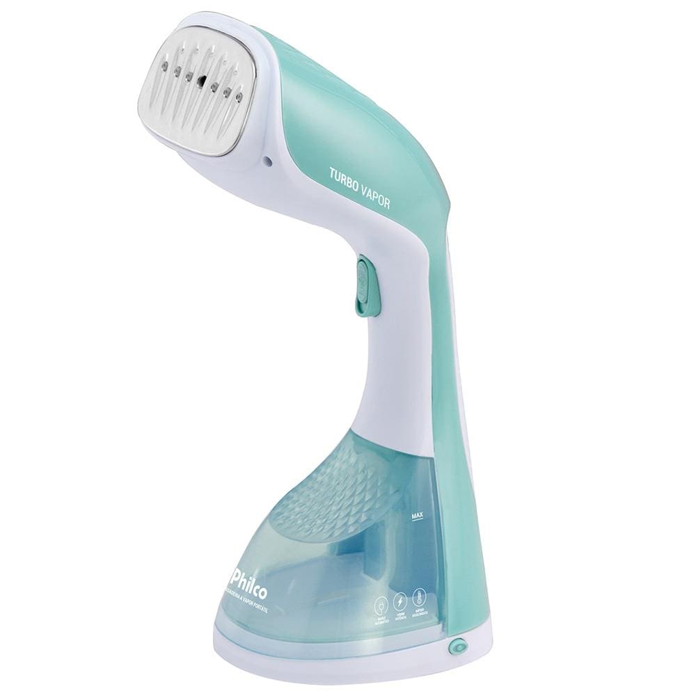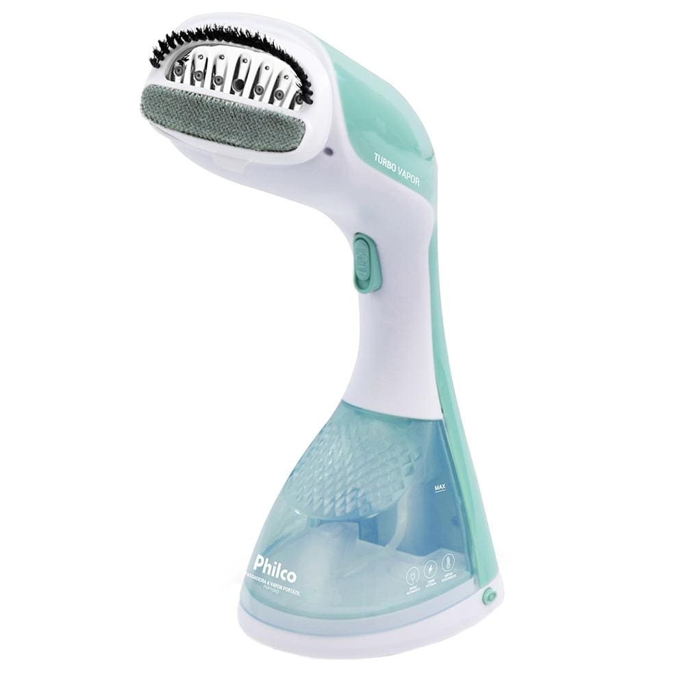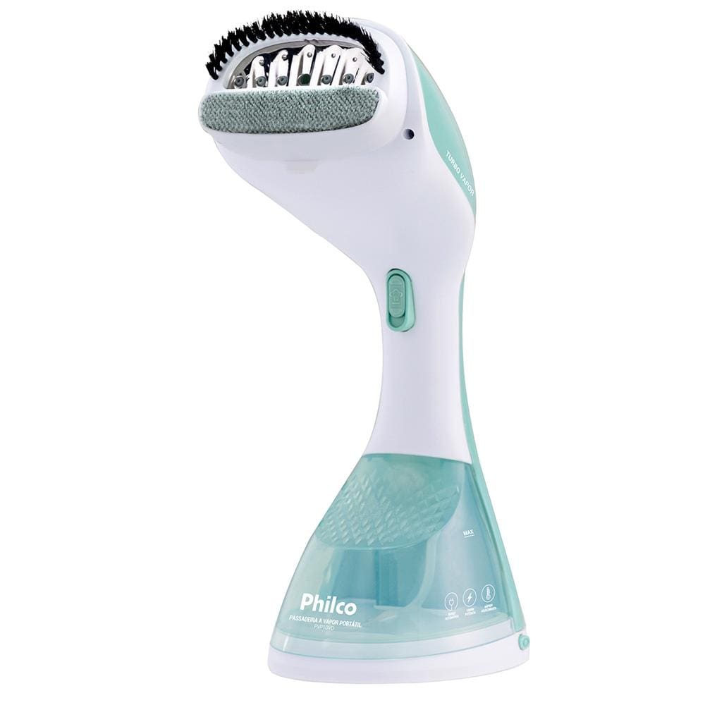 Conteúdo da Embalagem: -Passadeira de Roupas a Vapor Portátil Philco PVP10VD capacidade de 220ml e 1200W Bivolt - Branco e Verde;