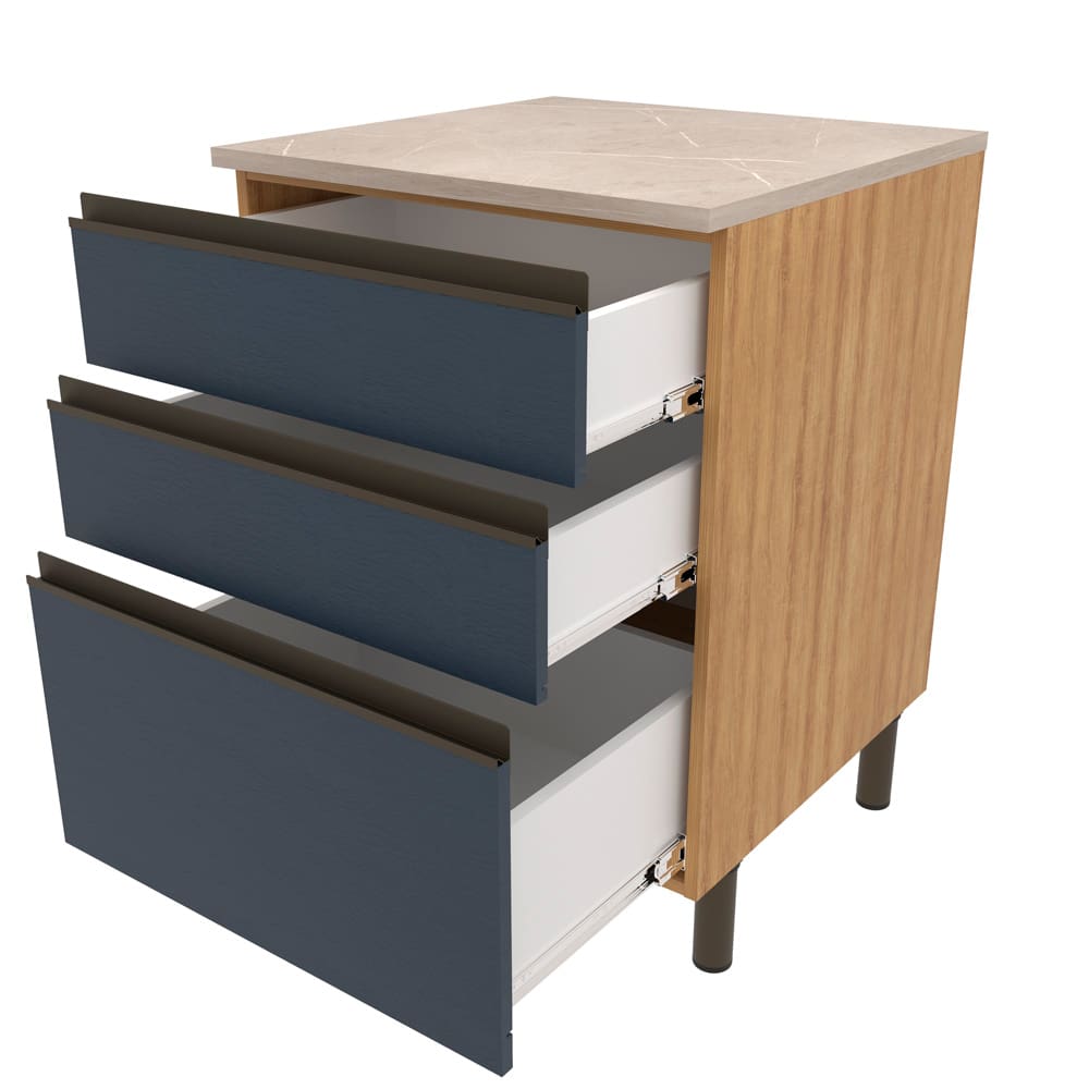 Balcão Bartira Cristal em MDP com 2 Gavetas, 1 Gavetão, 60cm de largura - Lâmina Mel/Azul Royal