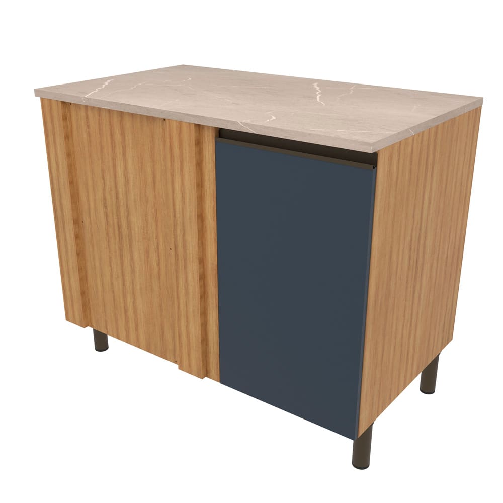 Balcão Bartira Cristal em MDP de Canto com 1 Porta e 1 Prateleira, 101 cm de largura - Lâmina de Mel/Azul Royal