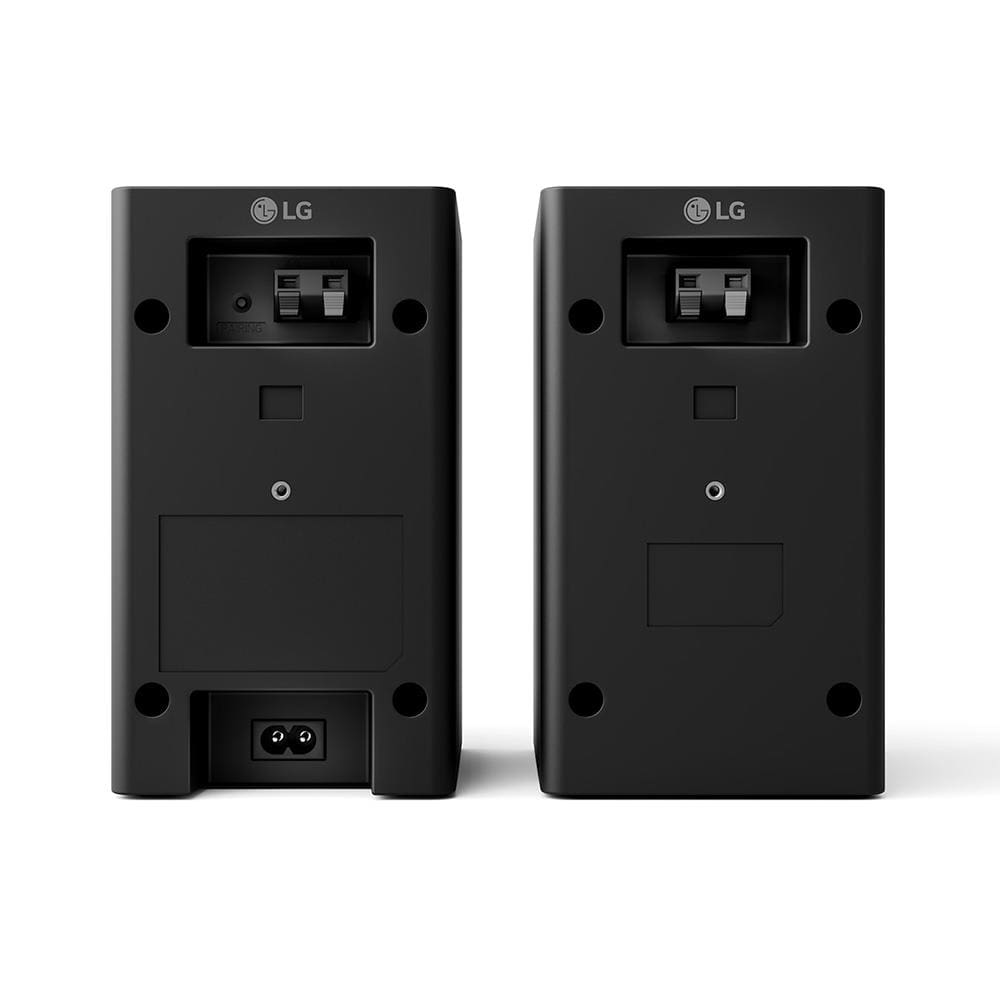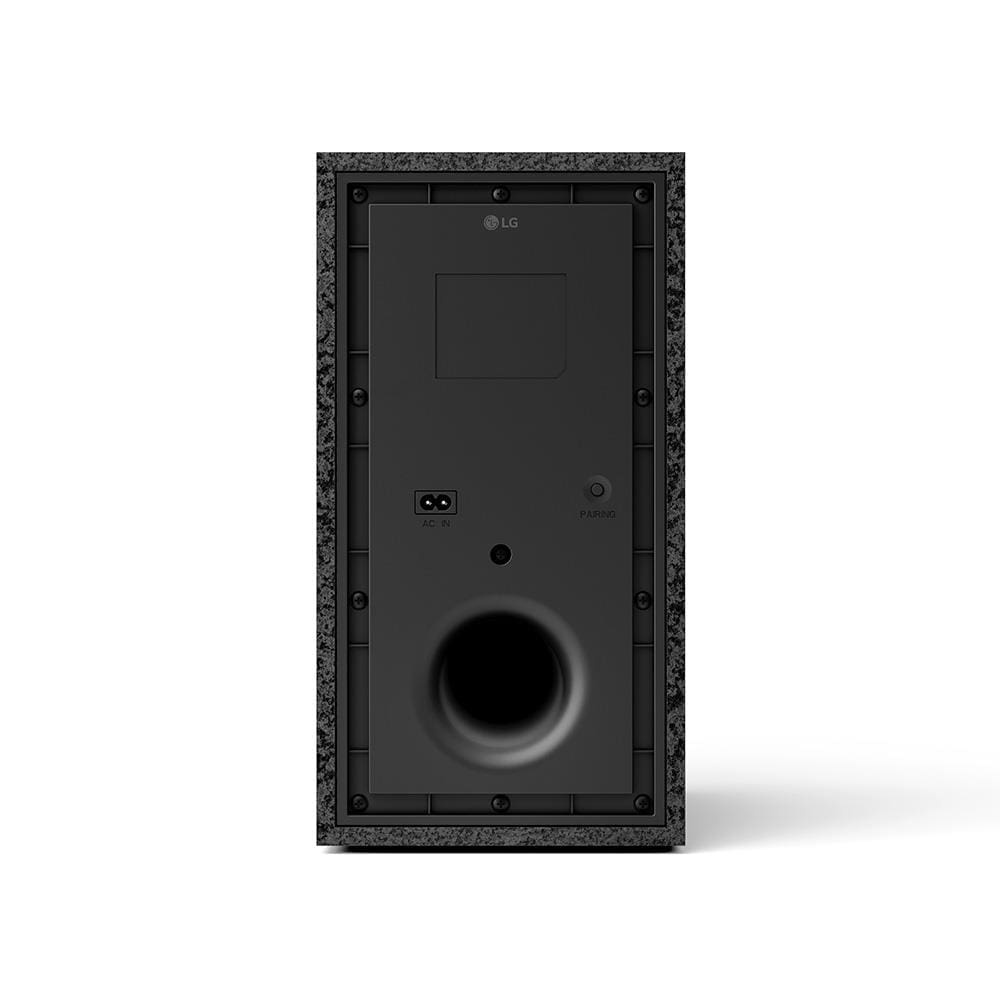 A praticidade e liberdade também são prioridades com a Soundbar LG S70TR. Seus alto-falantes traseiros de 2 canais podem ser instalados em qualquer parte do ambiente sem a necessidade de fios conectando-os ao soundbar, graças ao receptor sem fio integrado. Isso facilita a organização e instalação do sistema, mantendo a estética limpa e moderna do seu espaço.