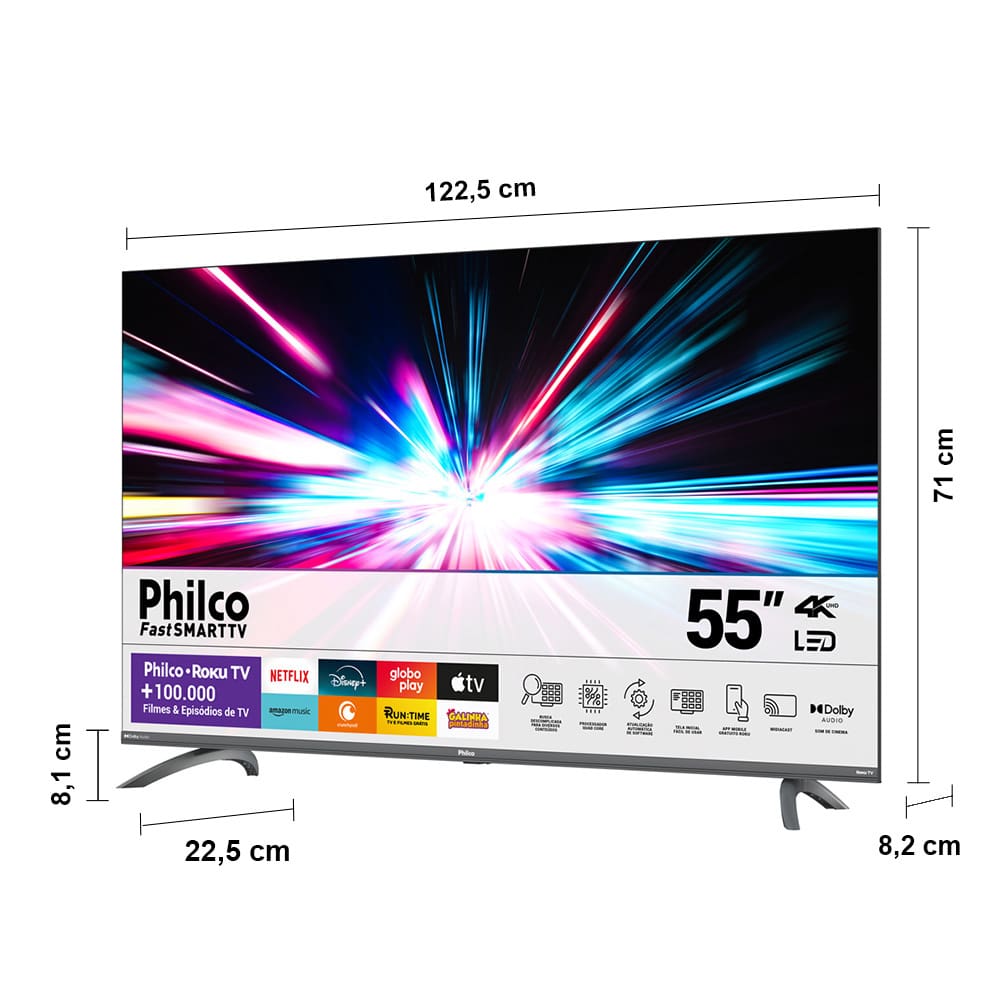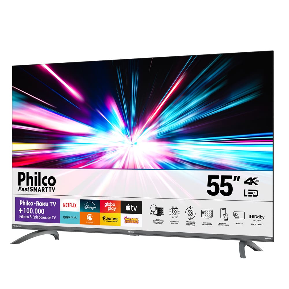 Smart TV 55” Philco Ultra HD 4K DLED PTV55G3ERSGB com Sistema Operacional Roku, Processador Quad Core, Dolby Audio, Media Cast, HDMI e USB