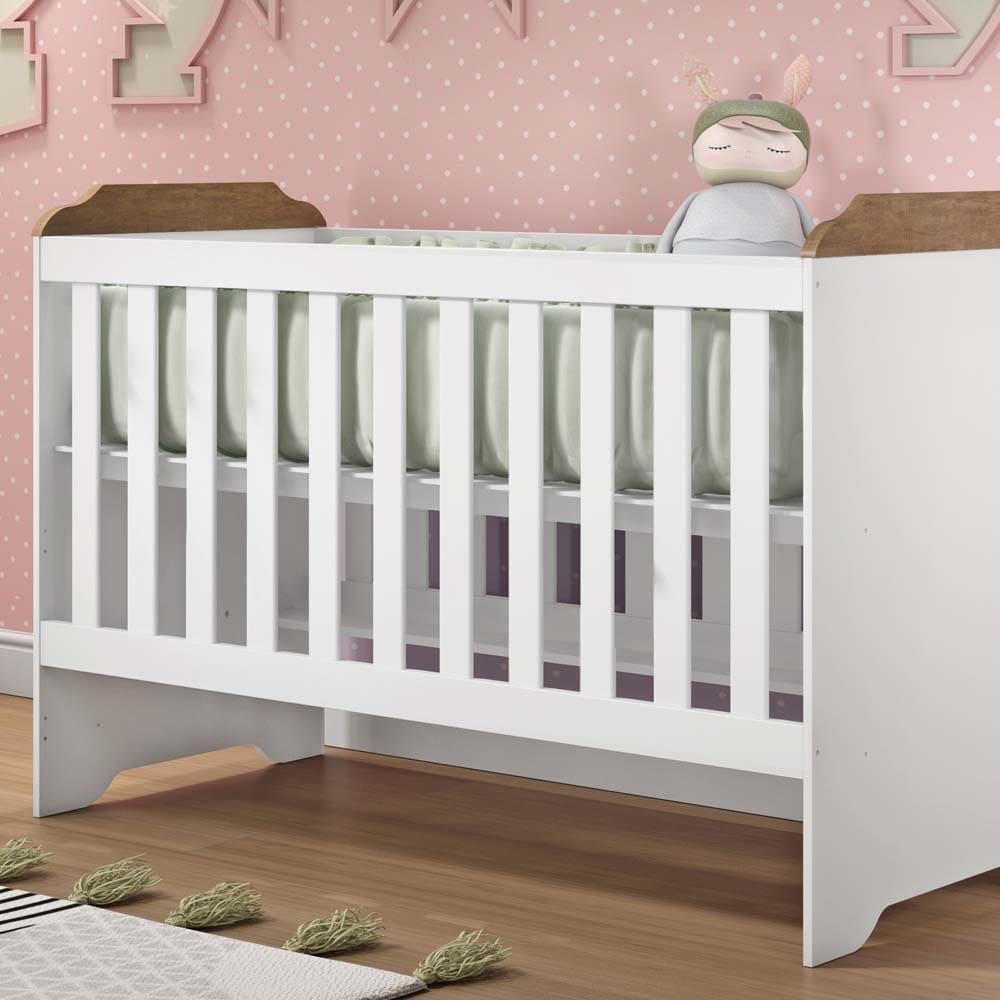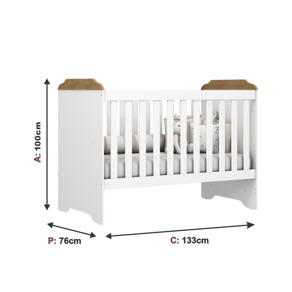 Conteúdo da Embalagem: -1 Berço Mini Cama Carolina Baby Mel 3 em 1 com Suporte para Mosquiteiro e 133cm de Largura -Branco/Bétula;