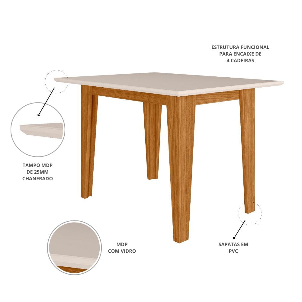 Tanto a mesa quanto as cadeiras são fabricadas com materiais de alta qualidade, garantindo durabilidade e estabilidade. Os pés em MDF 25mm e as sapatas plásticas proporcionam estabilidade adicional e protegem o piso. Já o acabamento em pintura UV faz com que a cor seja preservada por muito mais tempo.