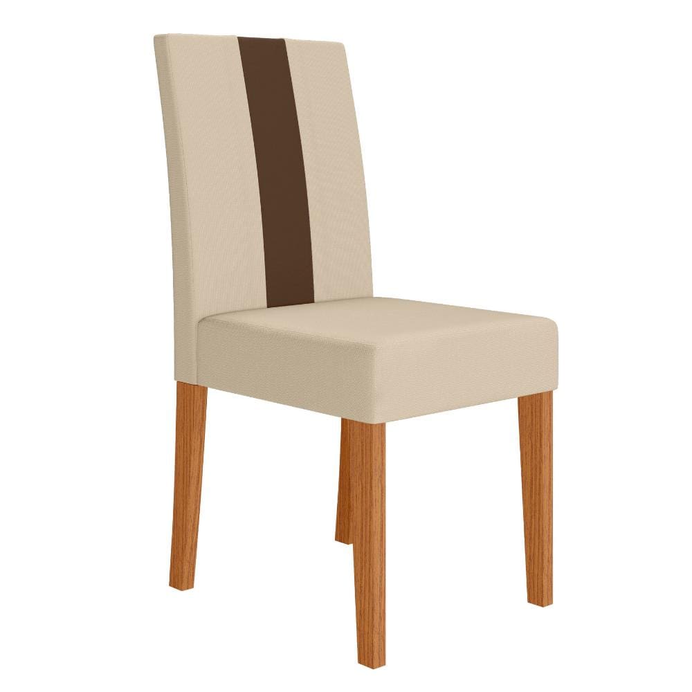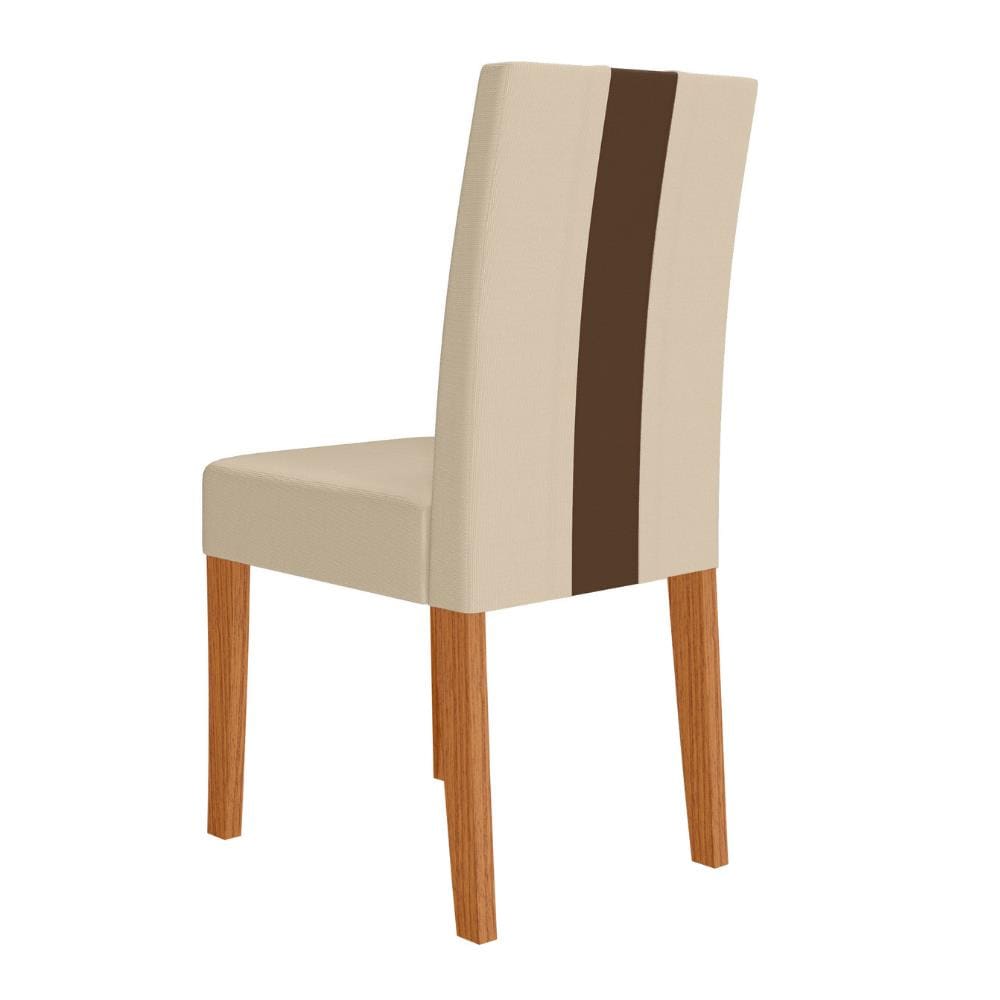 As 04 cadeiras que acompanham a mesa são resistentes e ergonomicamente projetadas para oferecer conforto em todos os momentos. Revestidas em tecido suede aveludado, proporcionam suavidade ao toque, enquanto o detalhe em courvin no encosto adiciona charme. Os assentos com espuma densidade D20 garantem excelente acomodação.