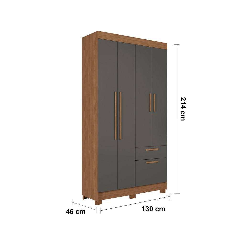 Guarda-Roupa Solteiro Santos Andirá Londrina com 4 Portas, 2 Gavetas e 3 Prateleiras - 130cm de largura