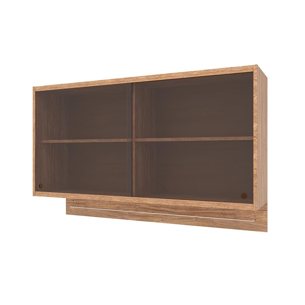 Armário Aéreo Bartira Amazonita com 2 Portas de Vidro, 2 Prateleiras e 120cm de largura - Damasco