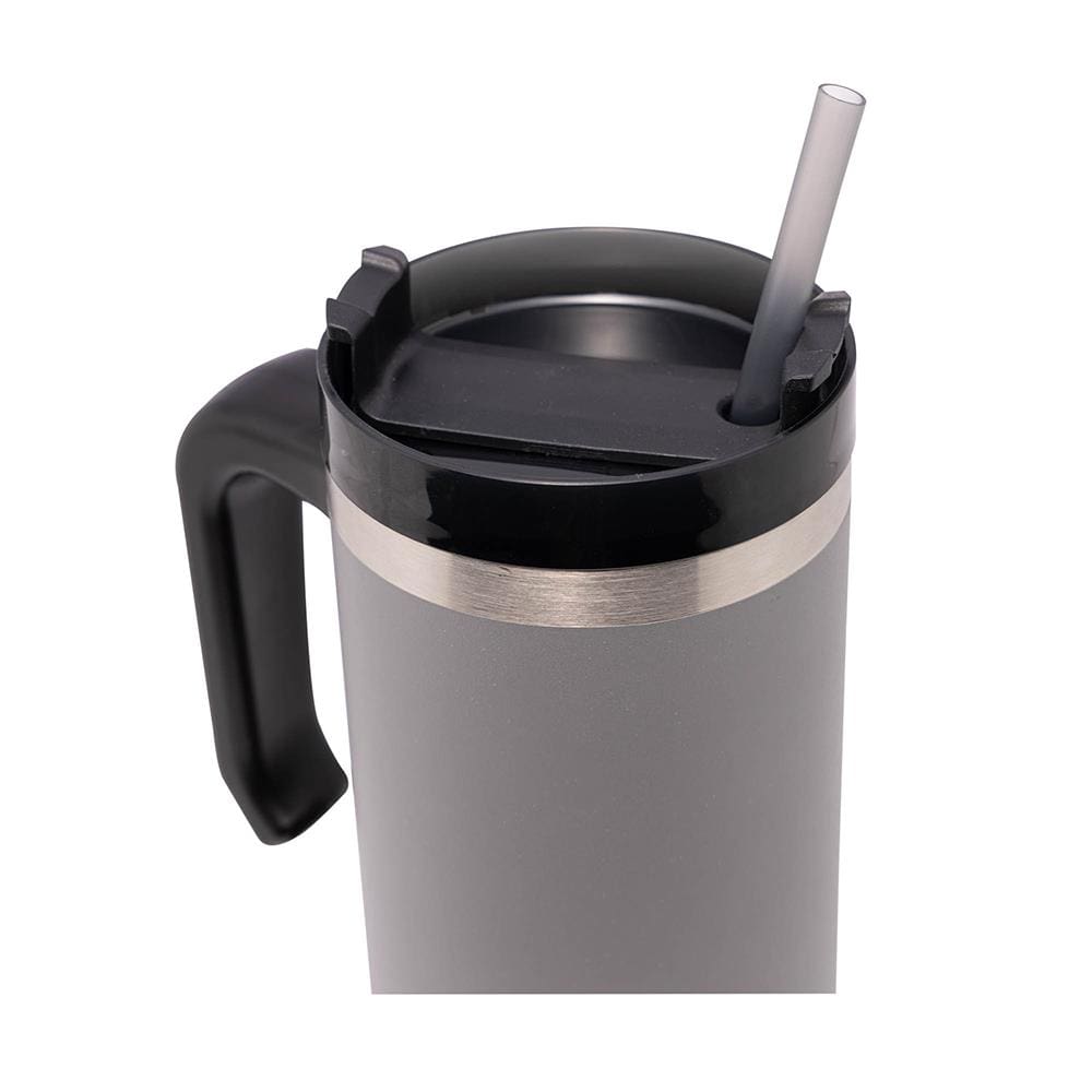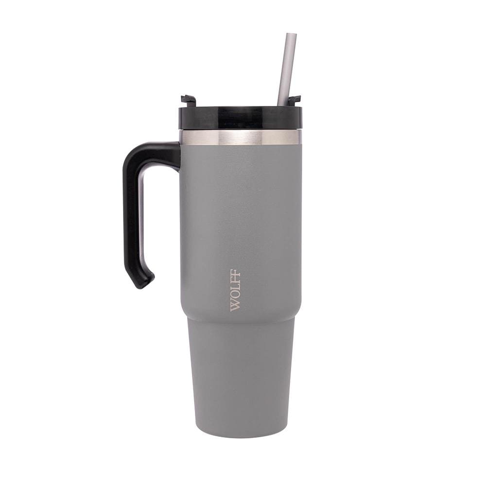 Caneca Térmica Wolff SlimTerm 890ml com Canudo, Parede Dupla e Base Ergonômica Cinza